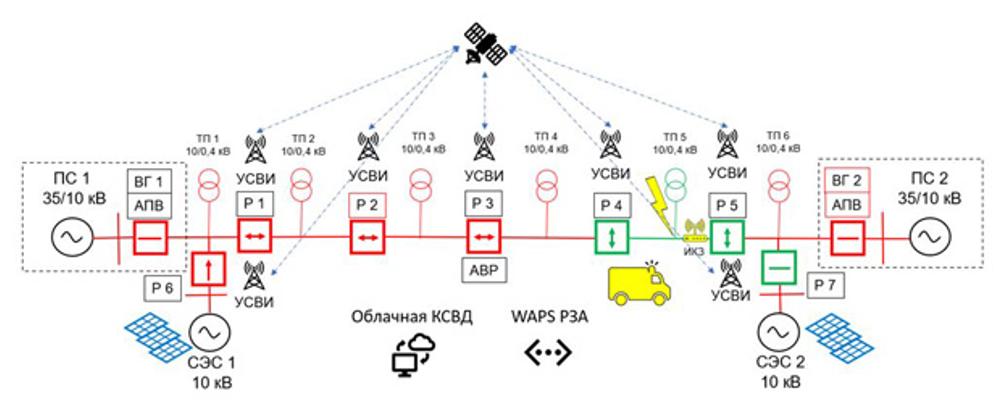 | Радиальный фидер | Направленная защита | Концентраторы данных (КСВД) | ||